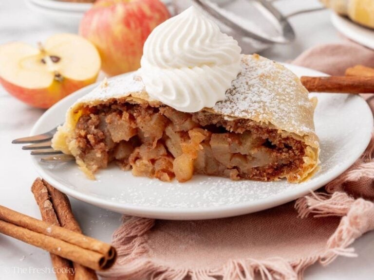 I took a cooking class from a Viennese chef and learned how to master making authentic Apfelstrudel. Maybe it’s my German heritage, but I’ve become a bit utterly obsessed with Apple Strudel! With its paper-thin layers of crust and perfectly spiced apples, this recipe feels like something straight from a café – kind of like apple pie, but not!