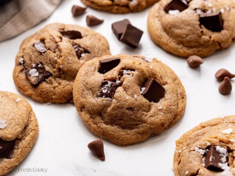 ⭐️⭐️⭐️⭐️⭐️ One reader raved: “I thought these were delicious! The texture is perfect. The edges get slightly crisp while the middles stay nice and soft and gooey. Even after hours, they remained soft in the center. I also love the nutty flavor from the browned butter. Flavor was great and I didn’t find it too sweet, even with the semi-sweet chips. I chilled mine 2 ½ hours and baked mine for 9 minutes” ~ Adrienne