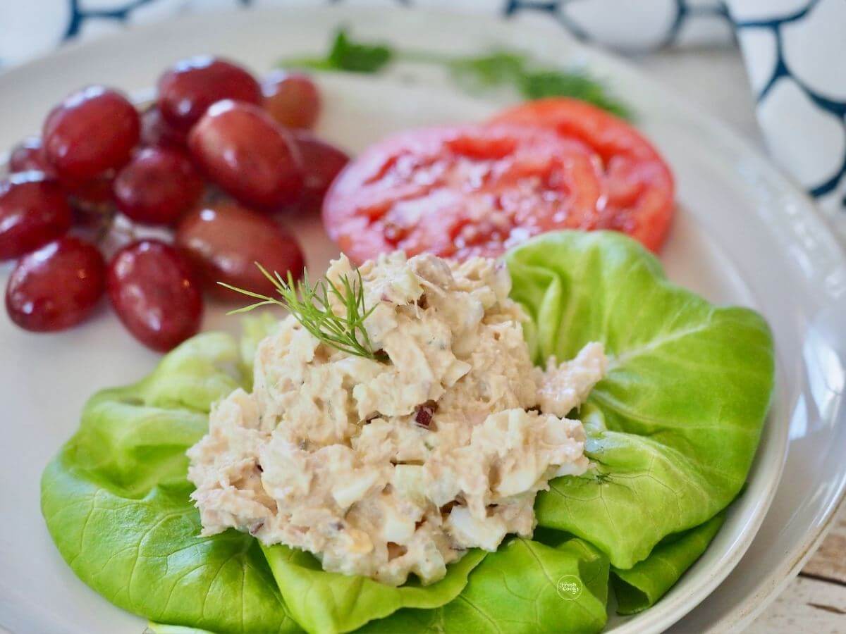 - Low-Carb Option – Top a bed of lettuce; like romaine, spinach, or butter lettuce leaves with the tuna salad and a juicy ripe tomato wedge. Or make tuna salad lettuce wraps for the whole family to enjoy a tasty light dinner.